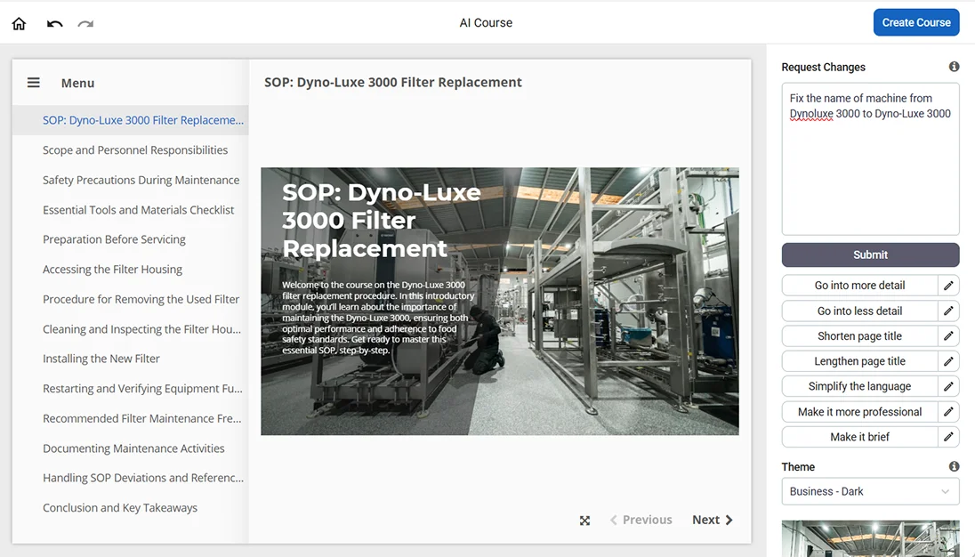AIコース作成者およびSOPトレーニングソフトウェア